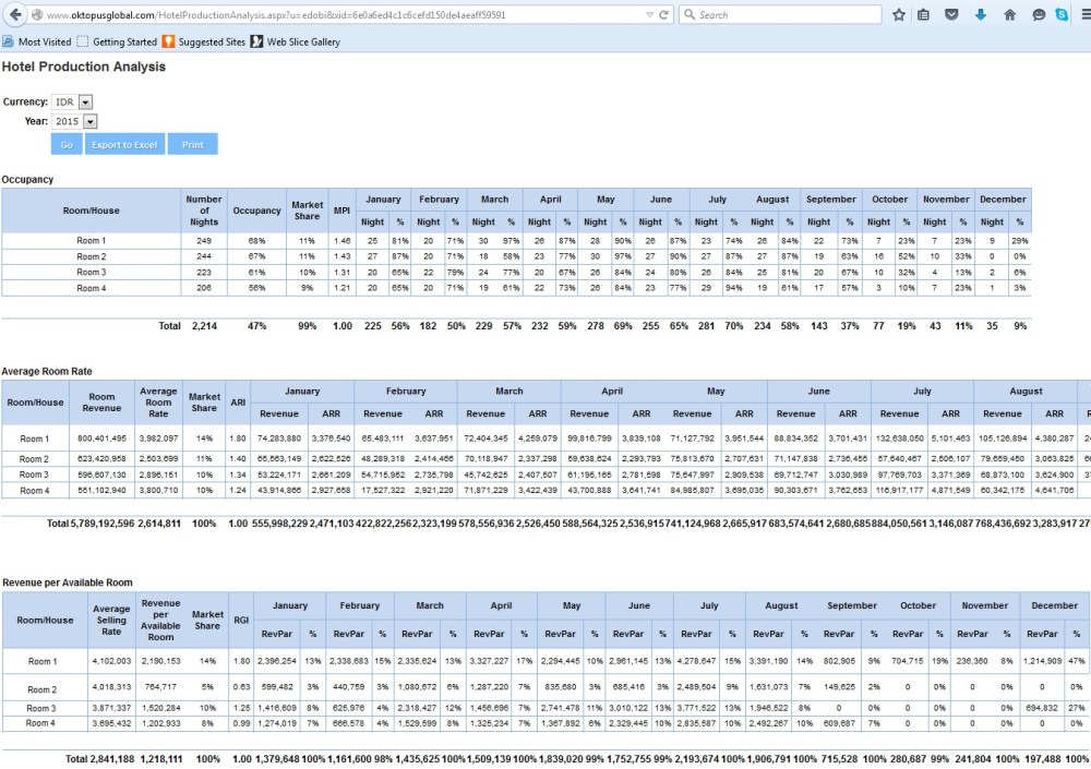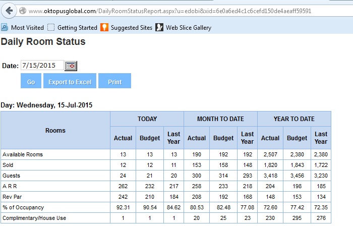 - Hotel occupancy status analysis report versus sales targets